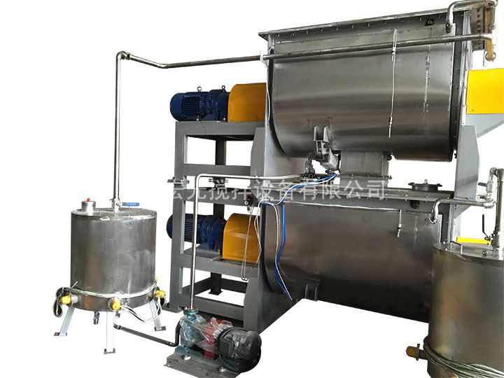 6、加液霧化裝置:對不同粘稠度的液體物料進行霧化,使加入液體物料混合均勻(噴灑狀)。